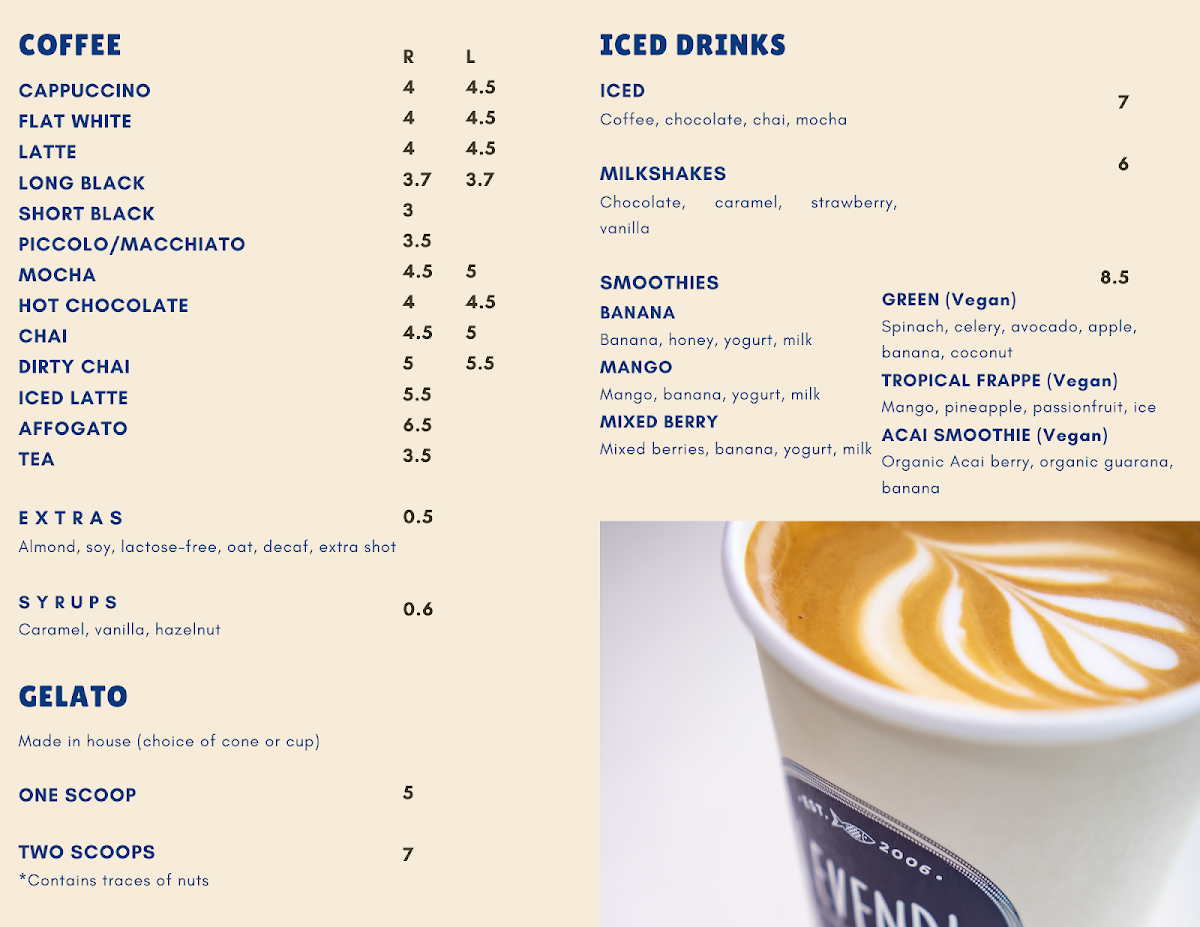 Levendi offers a straightforward and welcoming menu that perfectly suits its relaxed, waterfront setting. The focus is on casual bites like classic fish and chips, alongside a selection of fresh salads and satisfying breakfast options. Whether you're popping in for a morning coffee or settling down to a leisurely lunch, the menu strikes a balance between comforting favourites and light, flavourful choices.